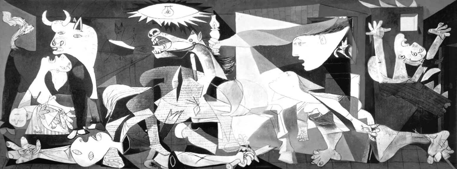 Guernica explodes when you enter the gallery. It is 25 ft wide and 11 ft high. Occupying an entire gallery, the painting is never alone. It demands a viewer explore the violent narrative. Agony is obvious. It consumes an entirely different kind of silence. Suffering depicted in such a compelling manner that the painting becomes something other than art.
